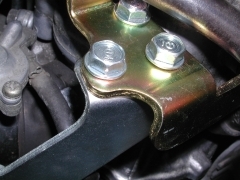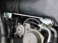 キャブレターステーとヘッドカバーステーのネジ穴をあわせます。 |