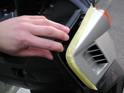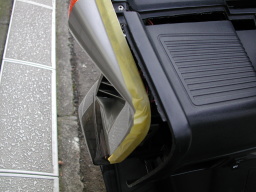 メンテナンスカバーの外側の塗装面を マスキングテープ等で保護します。 反対側も同様に保護します。 |