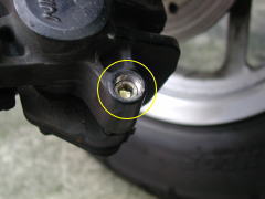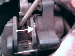 ドライバーなどをパッドの間でレバーにしてピストンを押し戻す。