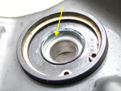 スイングアーム裏表のオイルシールのリップ部にグリスを塗る