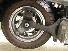 スイングアームを取り付ける。大きいカラーが裏側、小さいカラーが表側。