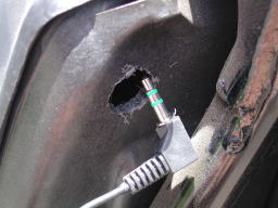 トランクインナー右側に開けた穴からトランク内へ引き込みます。 |