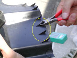 メンテナンスカバー裏側の爪を2本切り落とします。 |