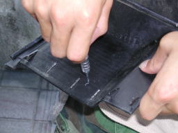 点線状に開いた穴をニッパーなどで破り、下穴を開けます。 |