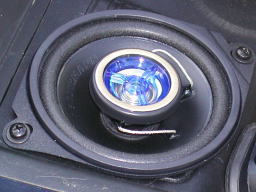 メンテナンスカバーにビス穴をあけて、スピーカーを固定します。 |