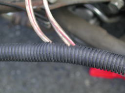 突起物の周辺や、熱の影響を受けやすい場所(マフラーやエンジンなど)を通る配線は、コルゲートチューブで保護します。 |
