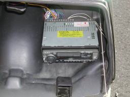 余った配線を束ねたら、ヘッドユニットの下にクッションを敷いて振動から保護します。市販のステーなどで固定するとベターです。 |