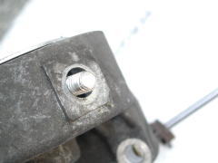 外側のカバーの、プラスのターミナルから、ナットと樹脂ワッシャを外します。 |