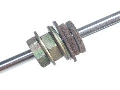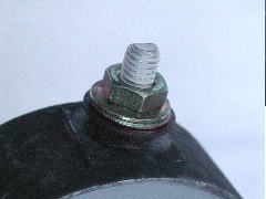 先に外しておいた樹脂ワッシャとナットを、ターミナルに取り付けます。 |